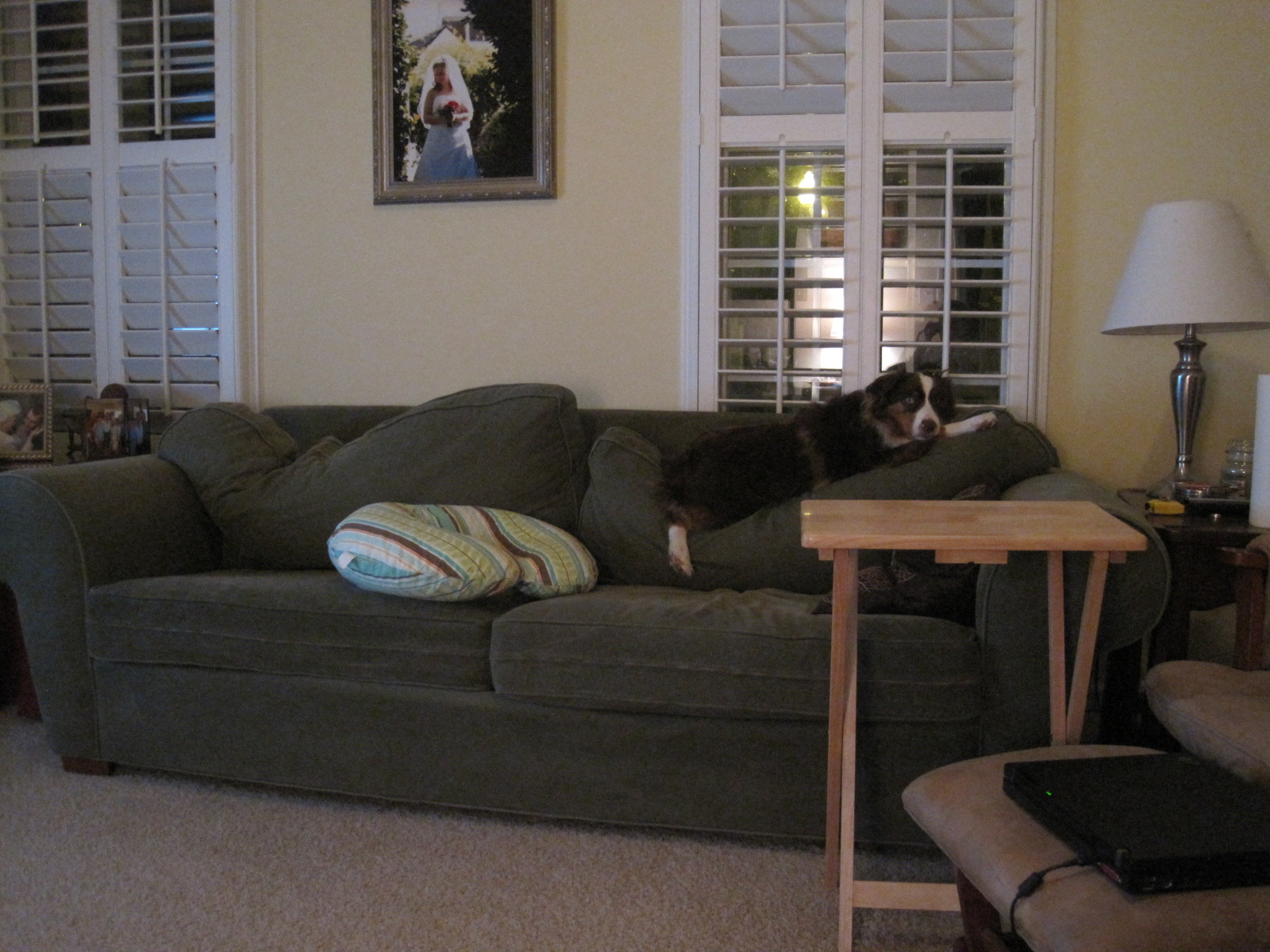 Love that mutt. He loves his new perch so much, he'll forgive you for the coffee table thing. (You forgot that the sofa most recently served as been "night duty central" since March!!!)